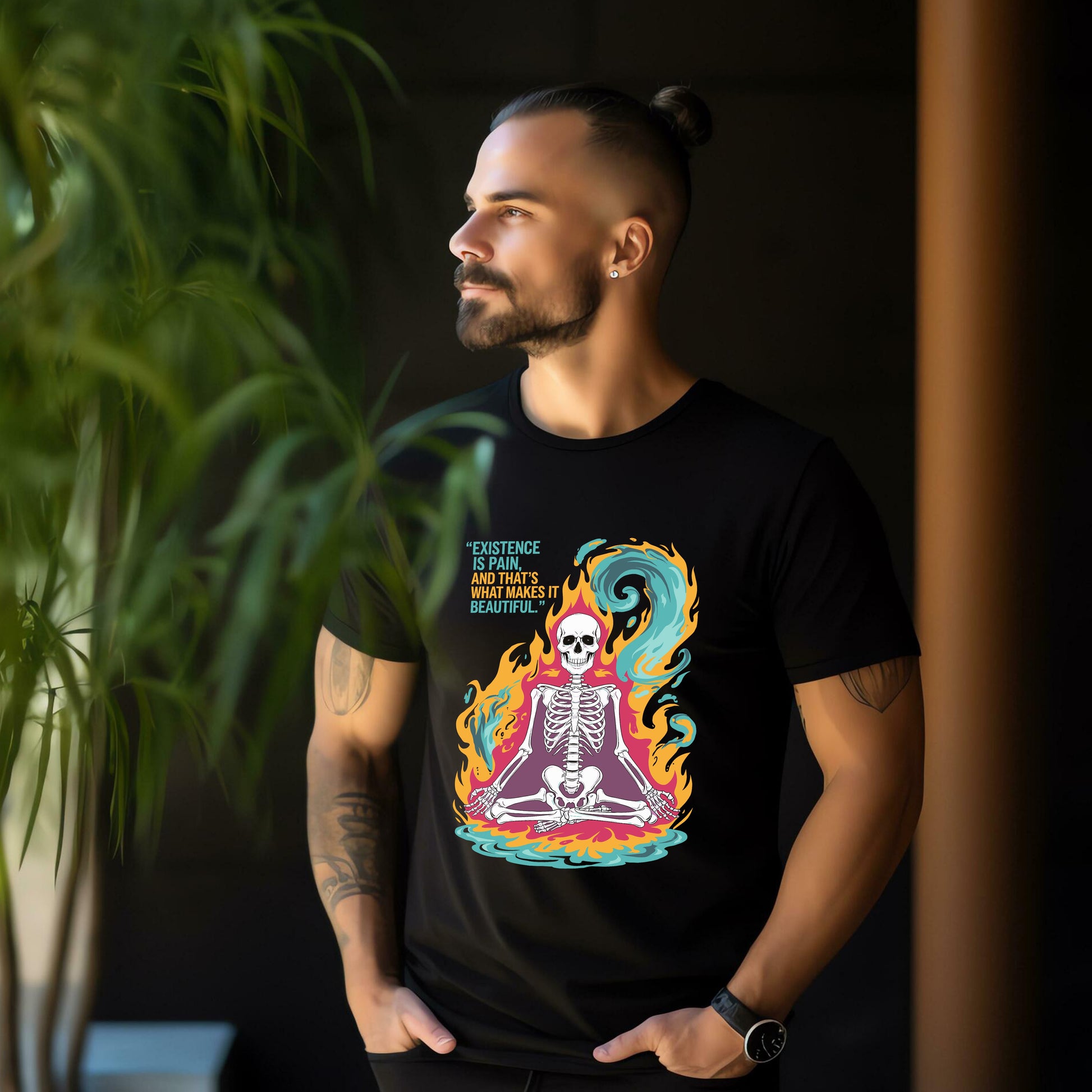 For the existential warrior, the poet in despair, the soul lit by the absurd. This design isn't just about darkness-it's about owning it. A gritty reminder that beauty often bleeds, and that the truest joy comes from walking through the fire with eyes open.