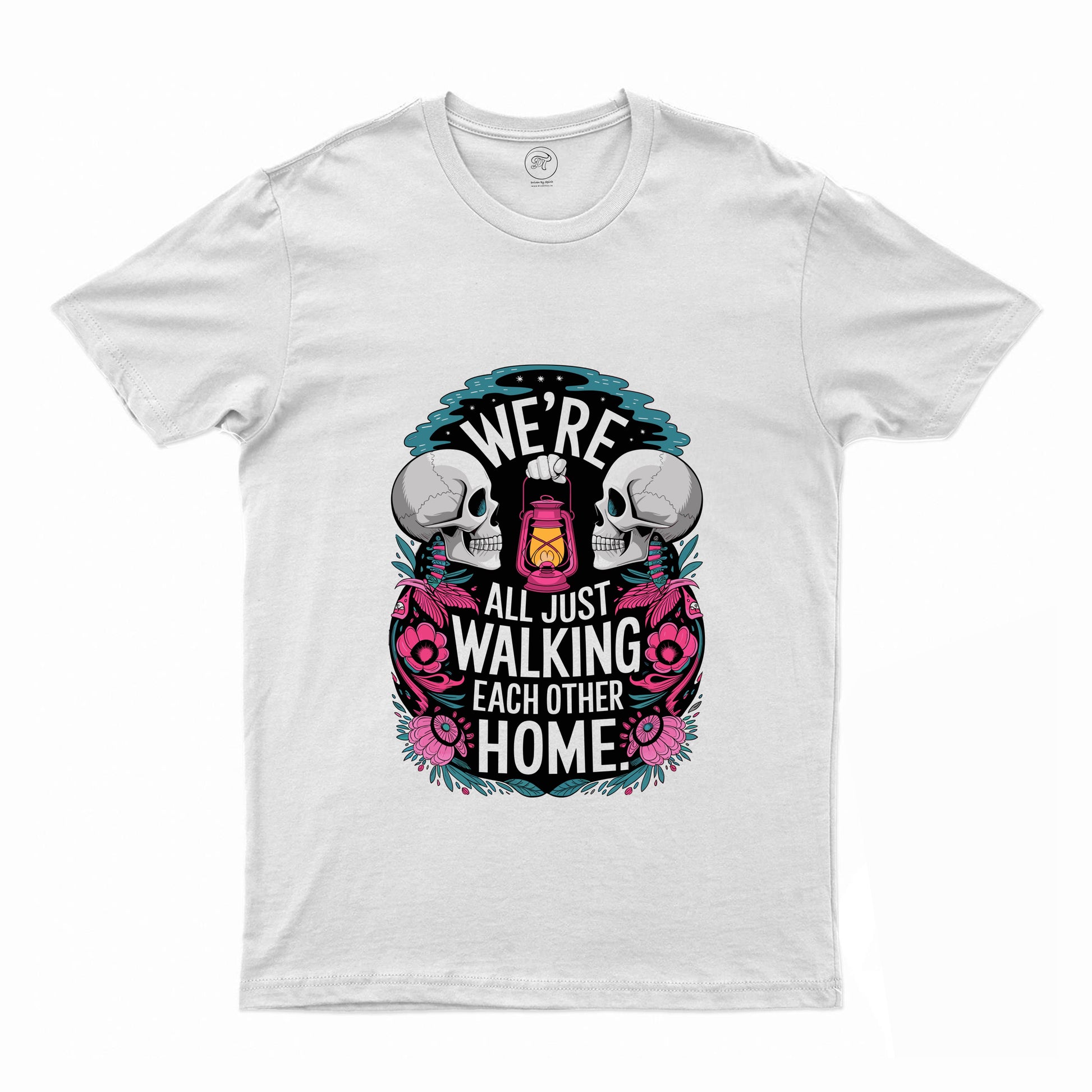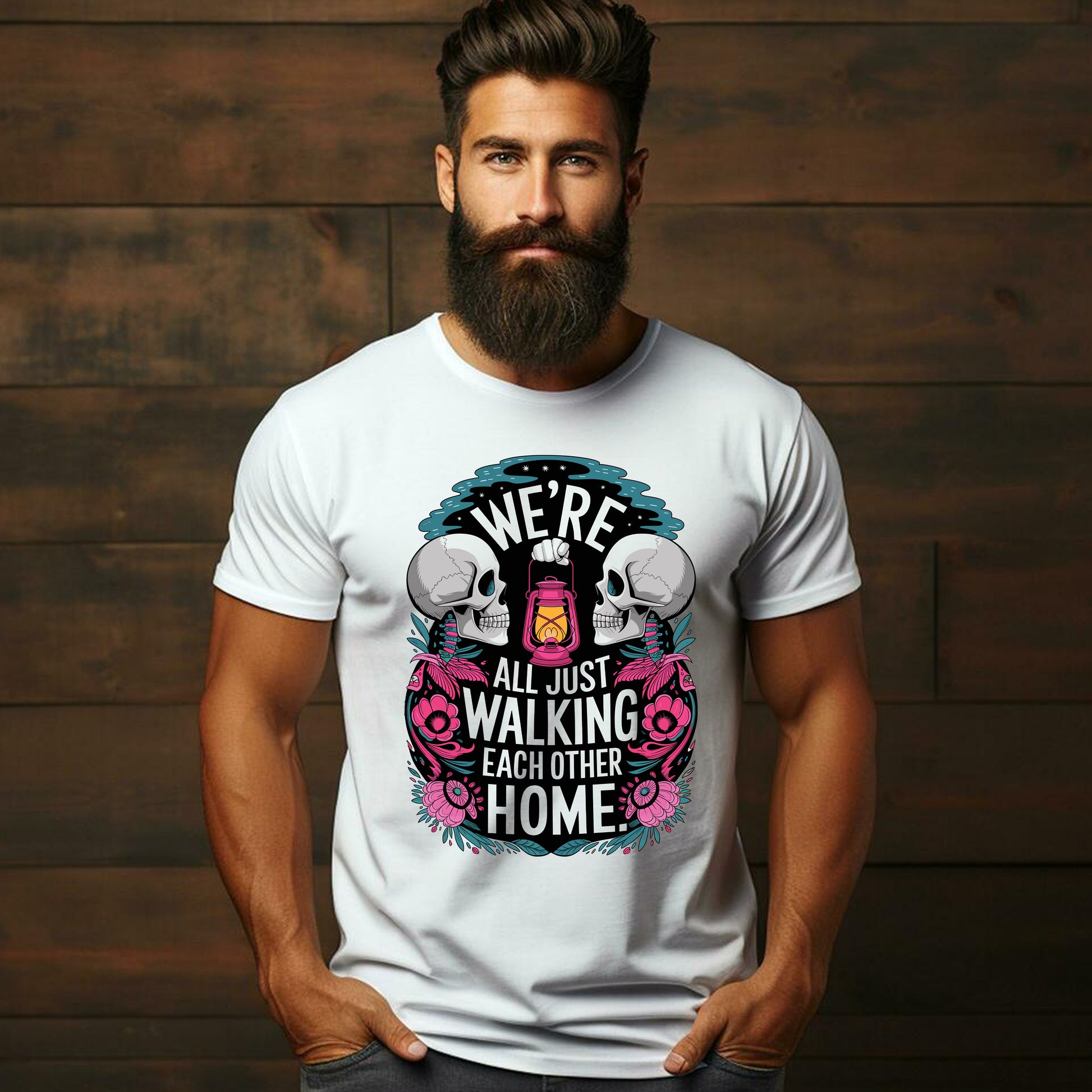 A soulful tribute to unity, mortality, and love. This design evokes the quiet beauty of human connection amidst life's mystery. Perfect for old souls, wanderers, and modern mystics who recognize the sacred in every journey and the divine in every companion. Wrap yourself in meaning and remember: we're not alone.